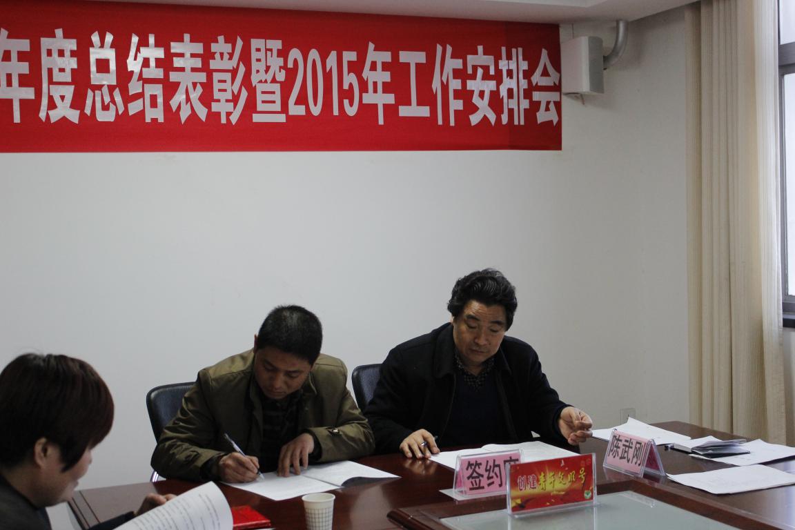 會上,物業(yè)公司總經(jīng)理趙明海代表物業(yè)公司與子公司,各服務中心、各部門簽訂2015年《目標責任書》。
