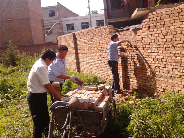 保衛(wèi)小區(qū)安全,服務(wù)中心修補(bǔ)倒塌圍墻